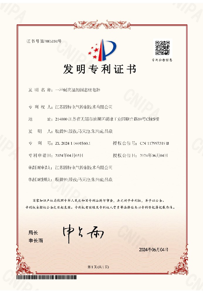 國(guó)家高新技術(shù)企業(yè),固態(tài)繼電器行業(yè)先驅(qū)者和行標(biāo)制定者。成立33年來(lái)各項(xiàng)專(zhuān)利累計(jì)超100余項(xiàng)。目前有效專(zhuān)利81個(gè),包含多項(xiàng)發(fā)明專(zhuān)利、實(shí)用新型、外觀專(zhuān)利等