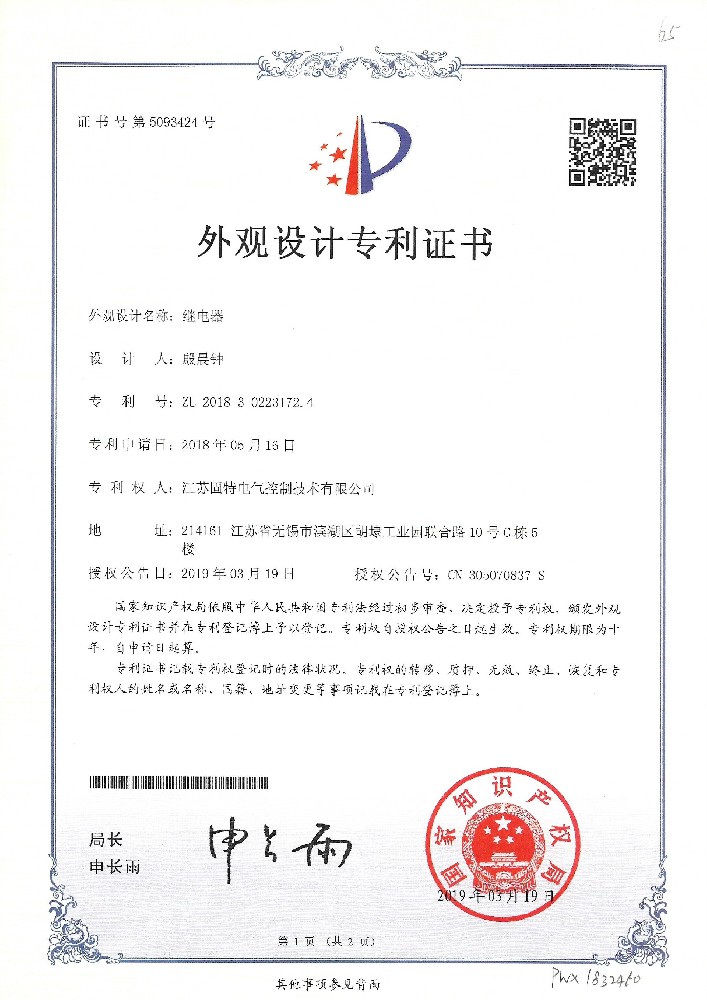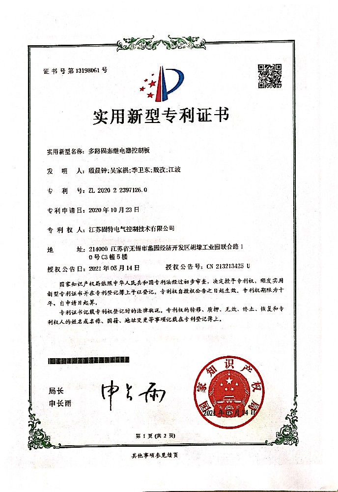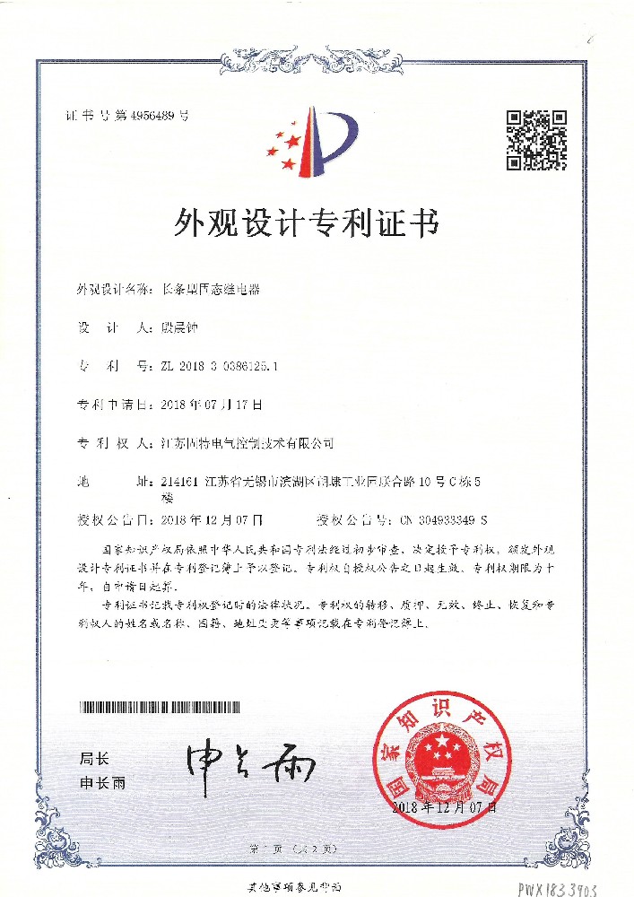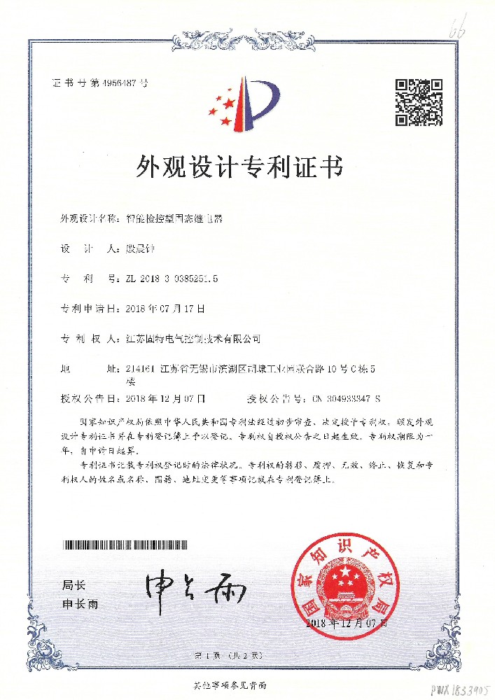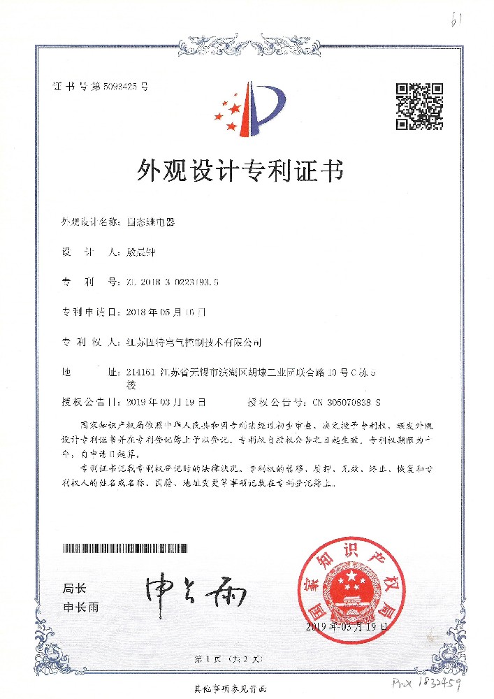 智能檢控型固態(tài)繼電器-外觀證書
