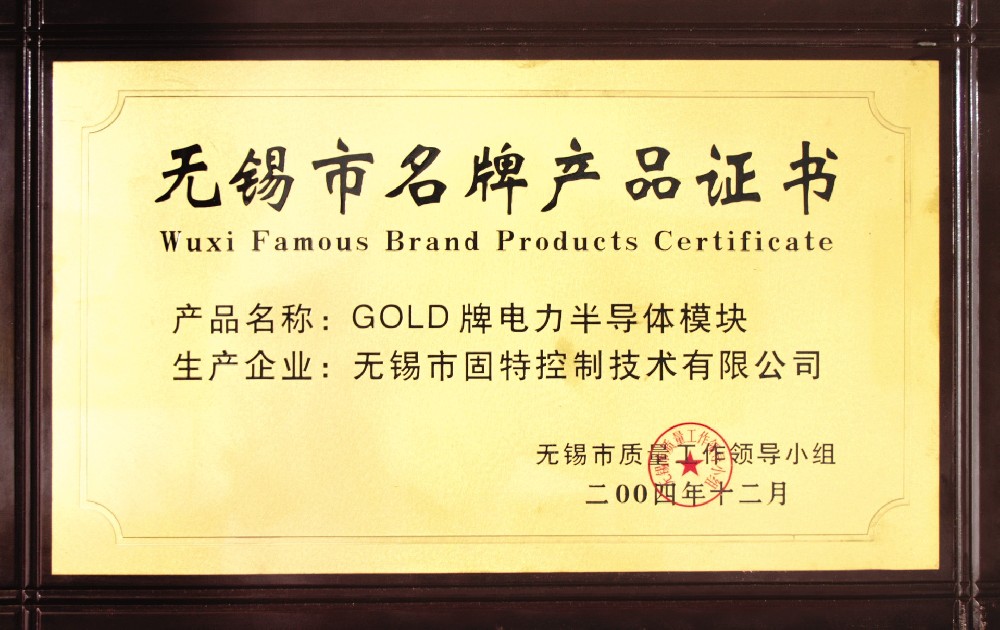 無錫市品牌產(chǎn)品證書