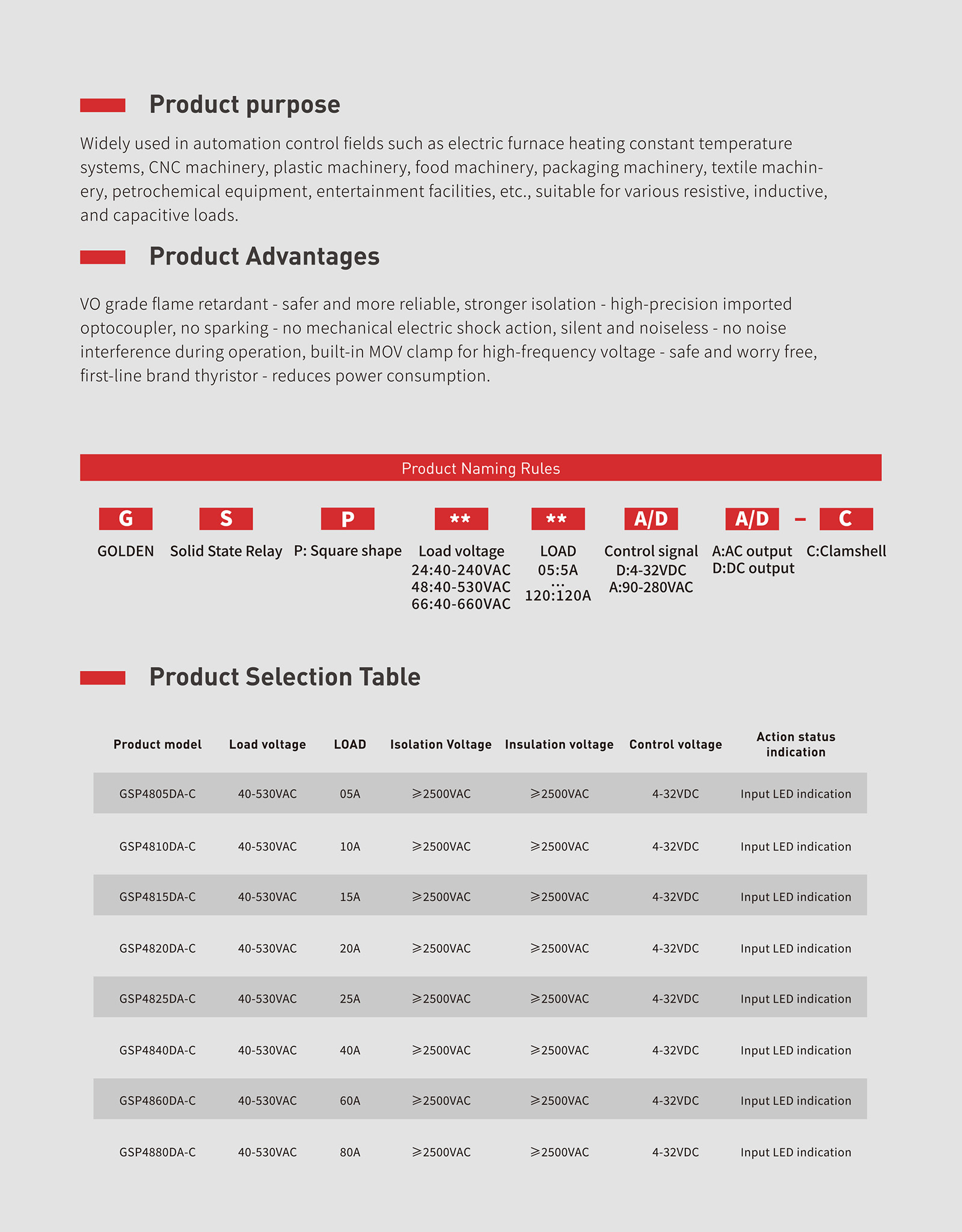 美國GOLDEN高登電氣 GSP53XXDA-C 單相臥式 SSR